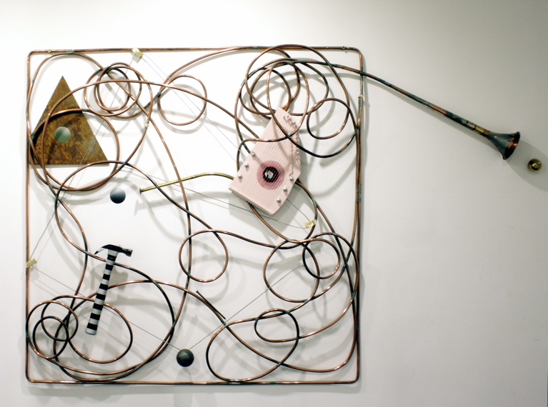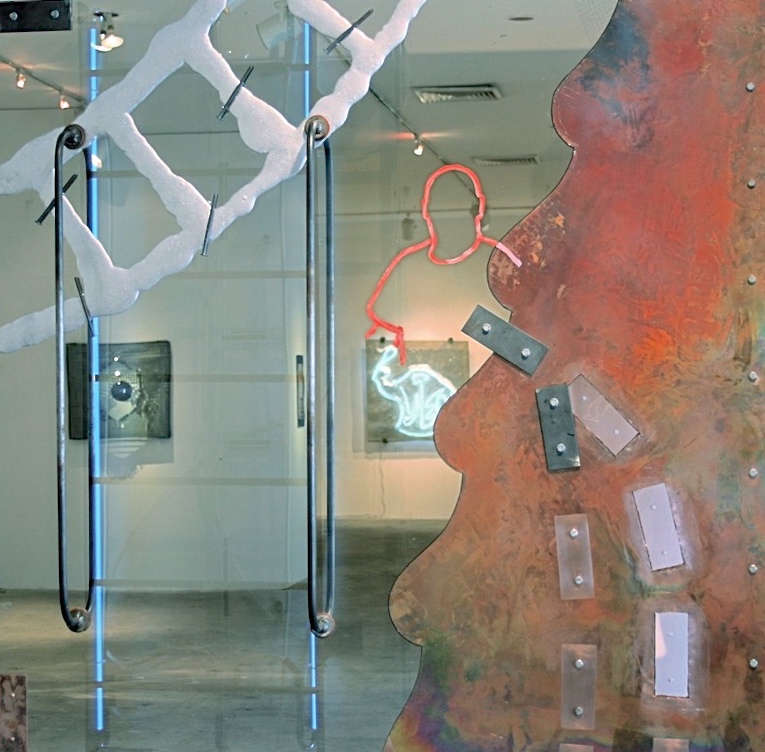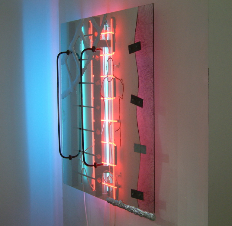 2. ‘Escape Ladder’ 48″ x 48″ neon on glass.