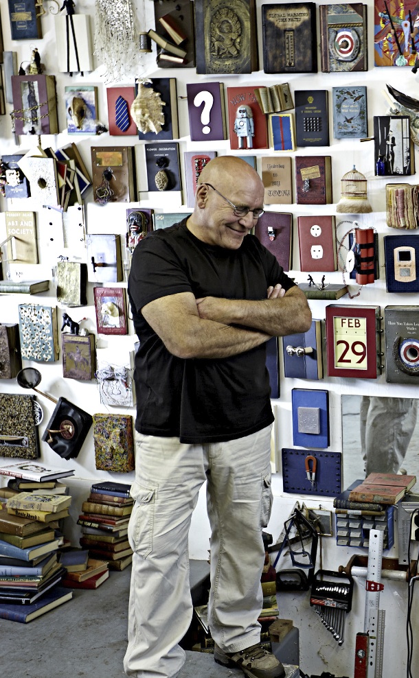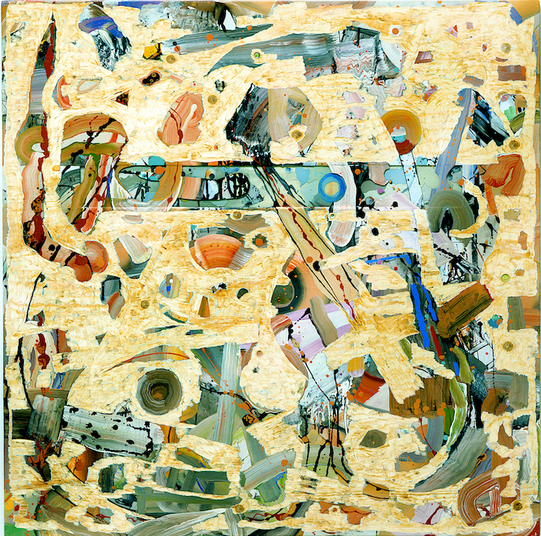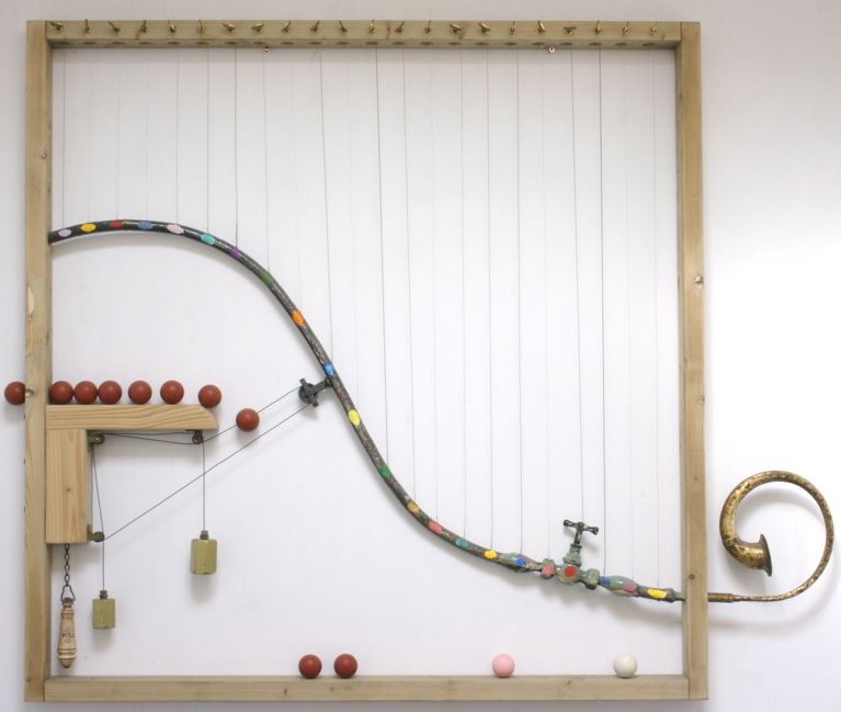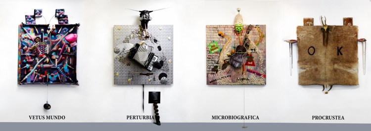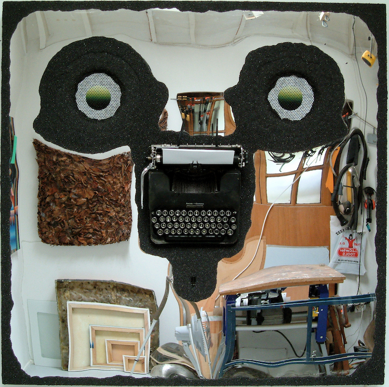 I would often begin the process setting objects deep into the surface – copper pipes, photographs, tools etc. and then completely covering them with canvas, paint, polyester resin.